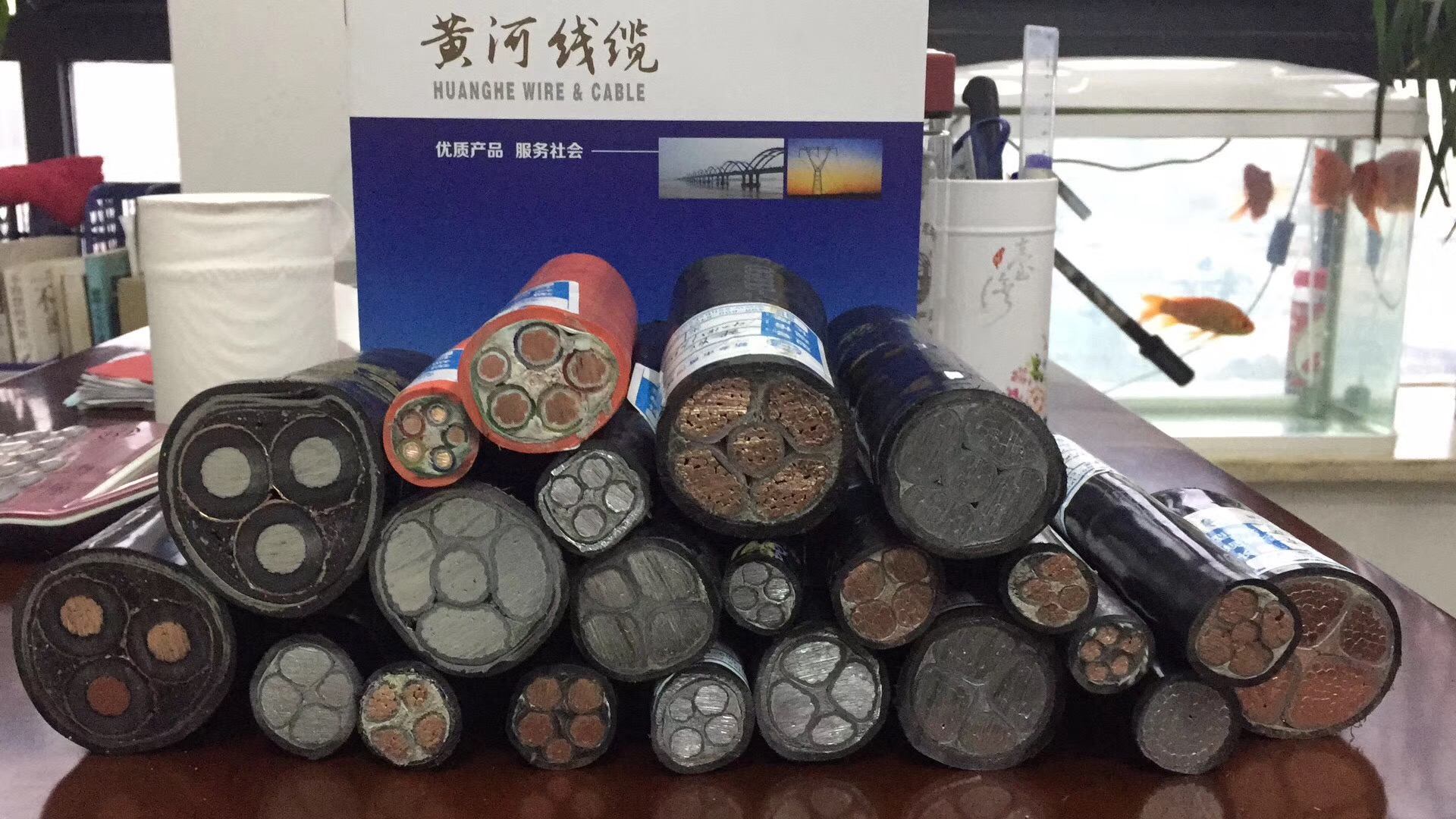 电线电缆一般是由几根或几组导线绞合而成的,每组导线之间相互绝缘,并常围绕着一根中心扭成,整个外面包有高度绝缘的覆盖层。多设在空中或装在地下、水底,用于电讯或电力输送。电