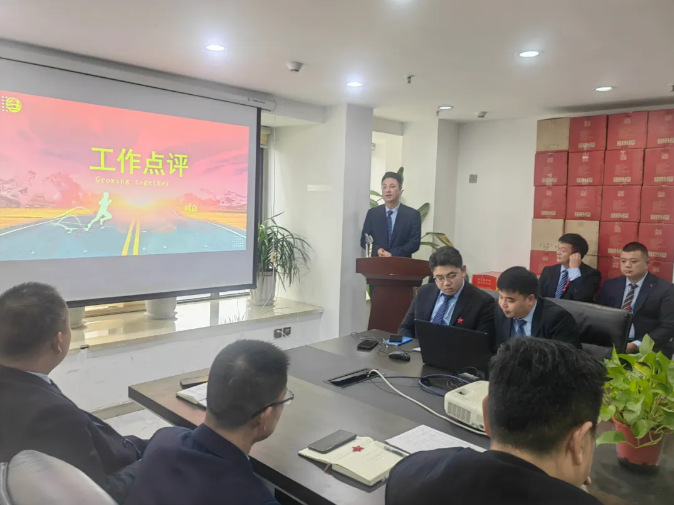 刘总在会上做工作点评,首先,欢迎新同事加入到黄河大家庭中,叮咛要以归零的心态融入到公司文化中,要做好长期耕耘的准备,希望在公司平台上书写精彩的篇章。接下来从三个方面做工作点评,一、针对市场大环境下,公司制定的各项常态化考核制度以及优化管理机制,大家要有压力,也要有动力,要以创新的思维,专业的能力和高效的执行,在变化中赢得主动,善于发现问题及时解决问题,只有拥抱变化才能快速成长。二、针对各区域任务达成情况进行逐一剖析,并对下一步工作提出具体要求,作为销售人员无论何时都要保持专注力,要静下心来,聚焦当前的工作,认真做好当下每一件事情。三、第四季度是定全年、保全局的收官阶段,公司上下要结合四季度和全年目标任务,增强紧迫感与责任感,团队上下高效务实,点燃工作热情,聚力冲刺全年目标。